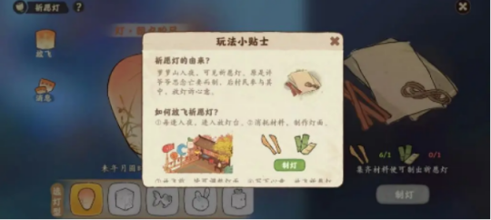 3、祈愿灯就是在入夜时前往祈愿台,通过消耗材料制作祈愿灯,并写下心愿祝福放飞,获得一定奖励的玩法;